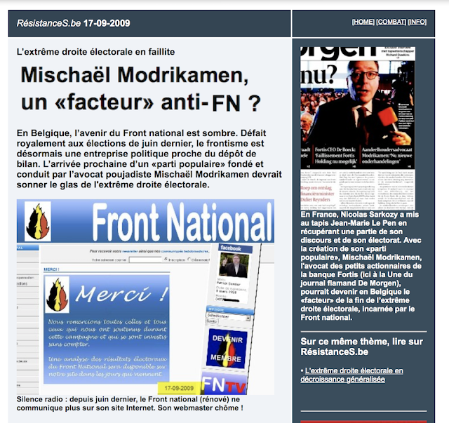 | Septembre 2009, le premier article de RésistanceS sur le Parti populaire de Mischaël Modrikamen. |